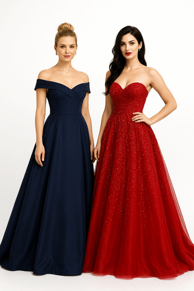 Dámy oblékají dlouhé večerní nebo plesové šaty, které mohou být velmi honosné a okázalé v různých barvách a dekorech. V souladu s tématem doporučujeme zvolit šaty či doplňky s prvky lásky – například odstíny červené, růžové nebo vínové, květinové motivy, šperky ve tvaru srdce nebo jiné jemné romantické detaily, které podtrhnou atmosféru večera.