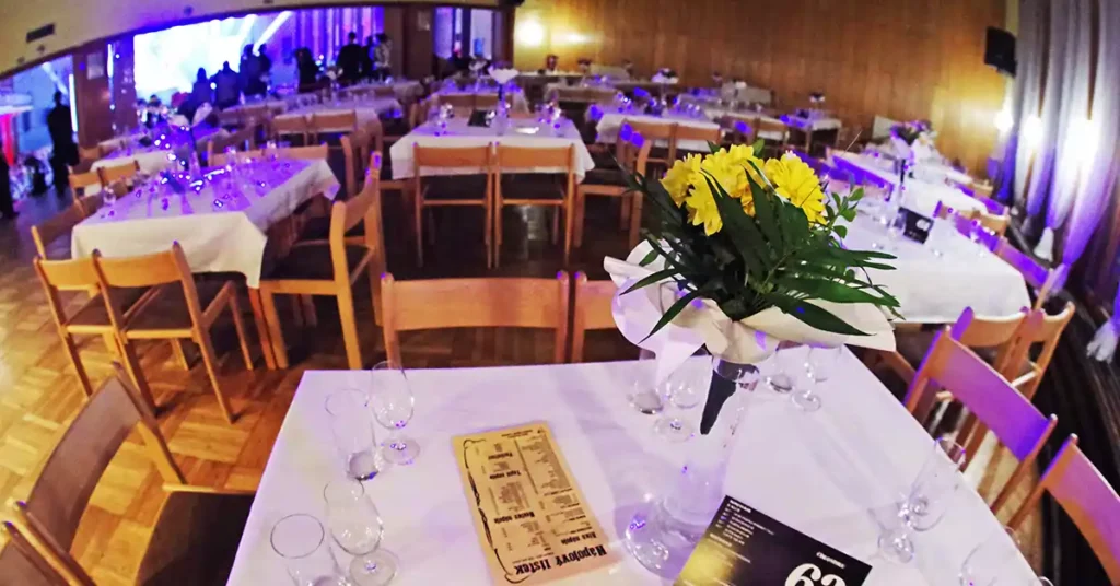 Hned za Velkým sálem najdete propojené a volně průchozí Velké přísálí – klidnější zónu, která je ale stále součástí hlavního dění. Nechybí tu bar a pohodové posezení, ideální pro drink, krátký odpočinek nebo rozhovor s přáteli, zatímco zůstáváte blízko programu Velkého sálu.